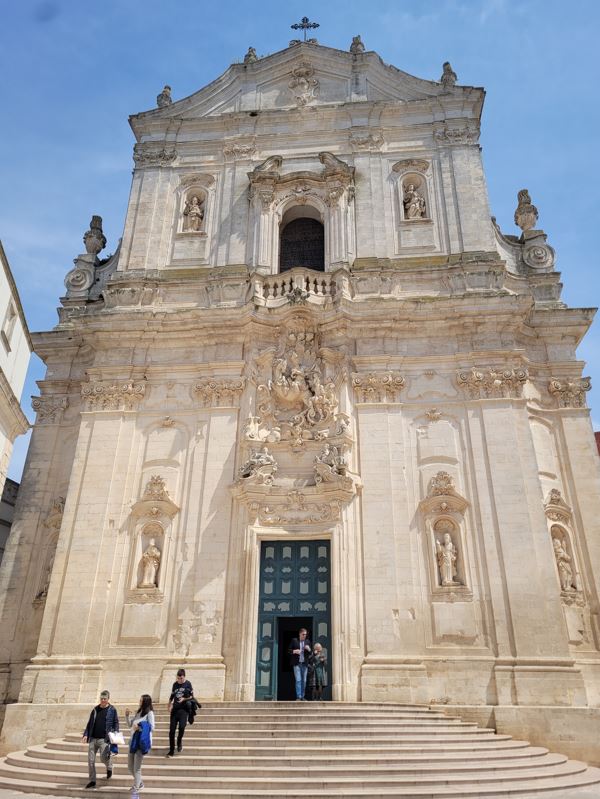 Le portail de la façade est surmonté d’un bas-relief représentant saint Martin de Tours et sainte Comasia, les deux saints patrons de Martina Franca, œuvre attribuée au sculpteur local Angelo Micheli.